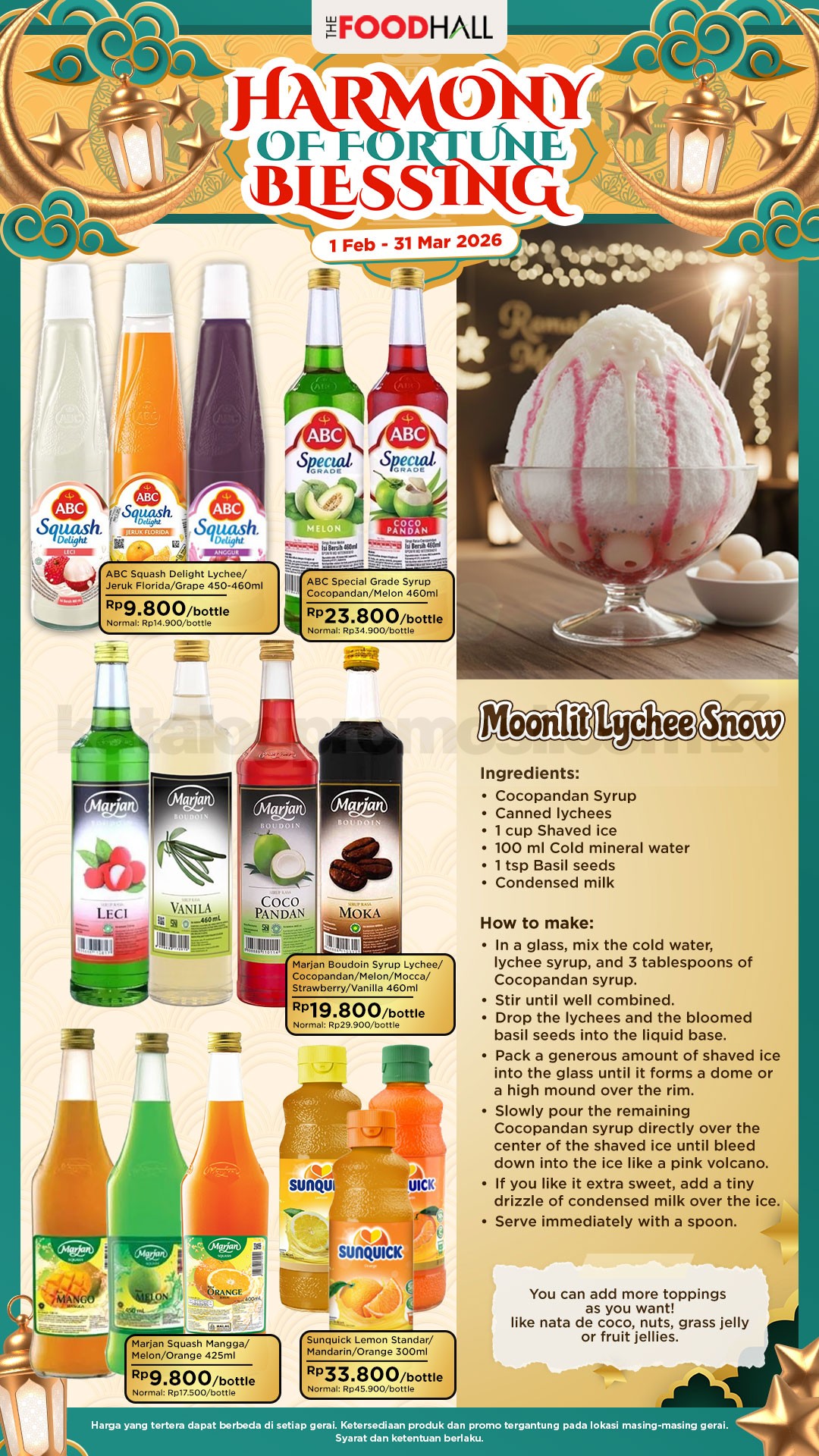 Promo The Foodhall Ramadan Harmony of Fortune Blessing berlaku mulai tanggal 1 Februari – 31 Maret 2026 dengan pilihan bahan pokok, makanan, dan perlengkapan