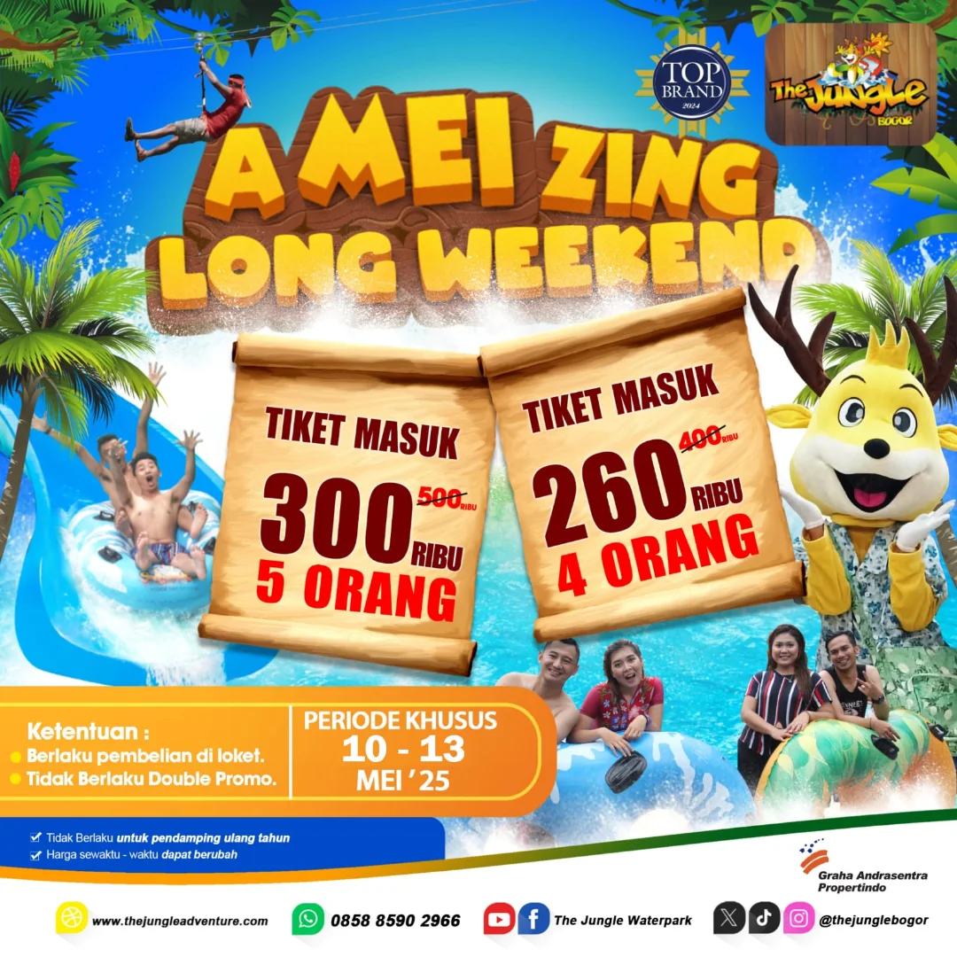 Jangan tunggu lagi! Seru-seruan bareng geng kamu jadi lebih hemat dan menyenangkan dengan Promo The Jungle Liburan Seru Ber 8 & Ber 10 mulai Rp. 450.000, booking sekarang dan nikmati liburan akhir tahun yang penuh tawa! 🌊🎉