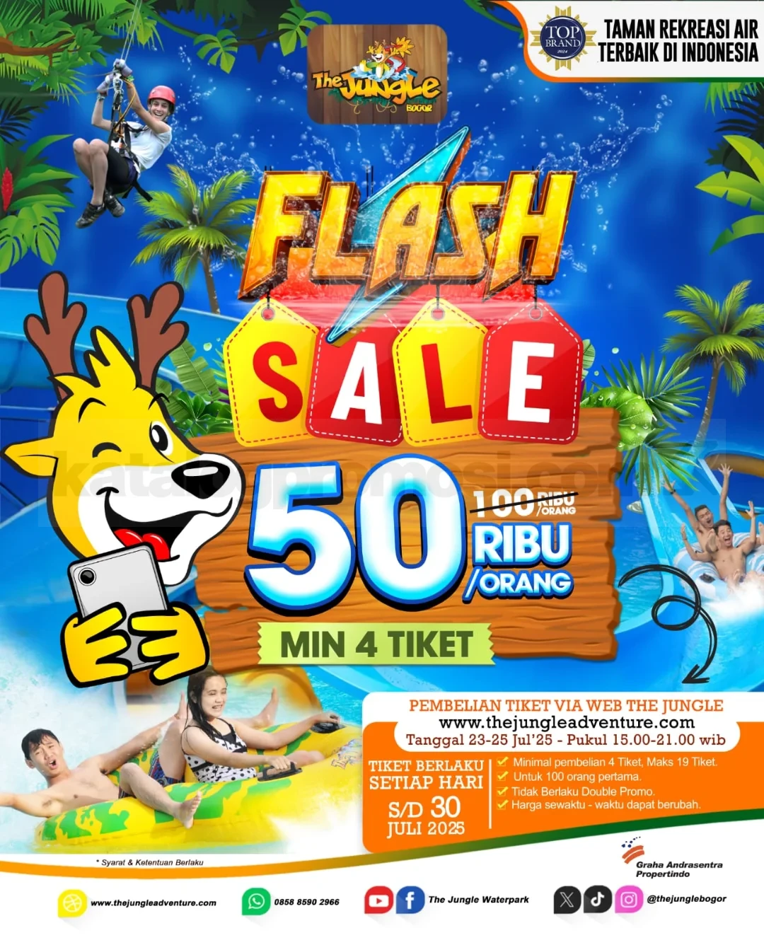 Promo The Jungle Bundling Berdua mulai Rp. 140.000, dapatkan 2 tiket + 2 flying fox + 1 loker, berlaku 1–19 Desember 2025 di The Jungle Waterpark.