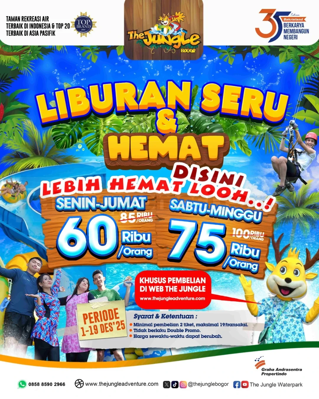 Promo The Jungle Liburan Seru & Hemat mulai Rp. 60.000, nikmati main air seru via website & KTP, berlaku 1โ19 Desember 2025 di Bogor.