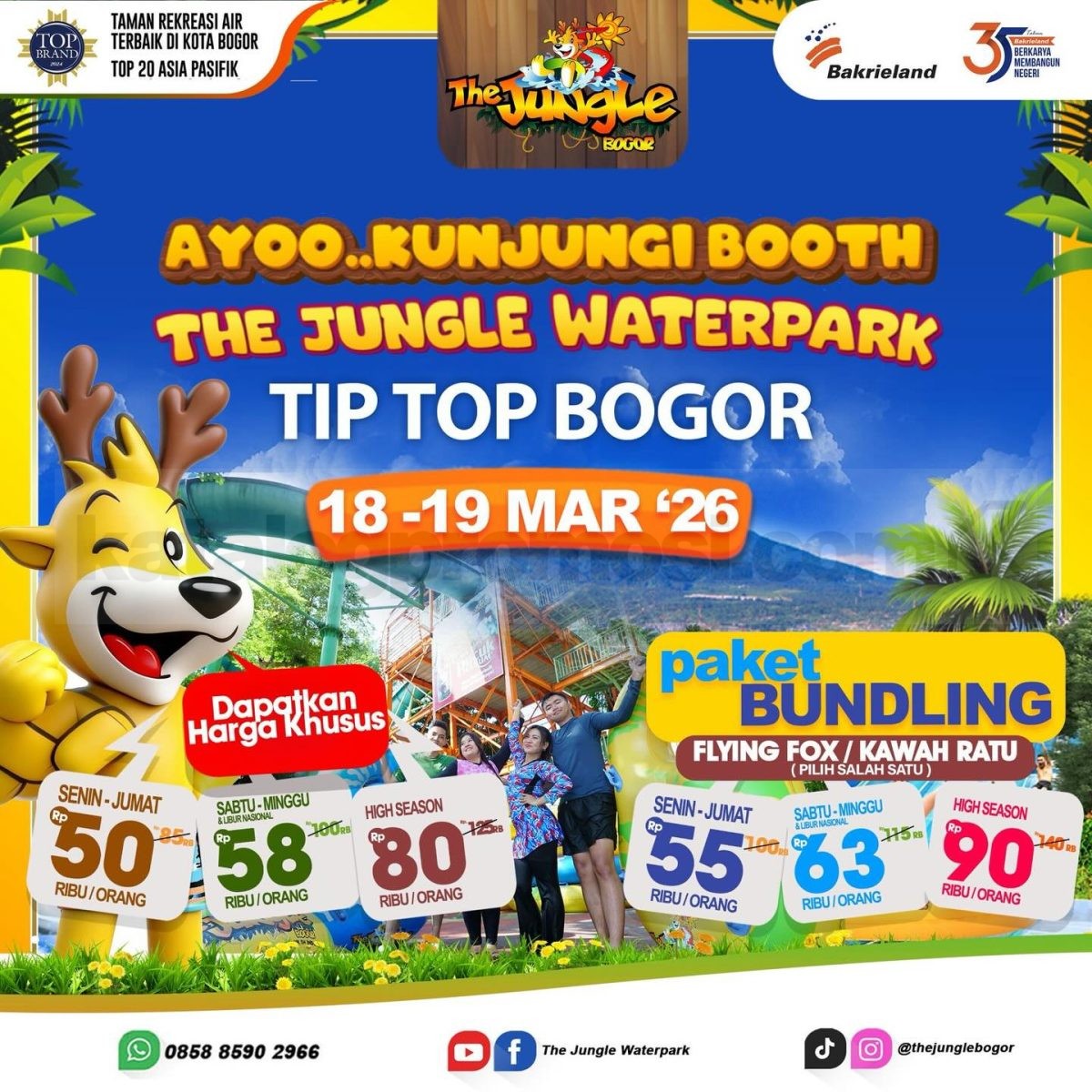Tiket promo dapat dibeli melalui booth The Jungle Waterpark yang berada di Tip Top Bogor.