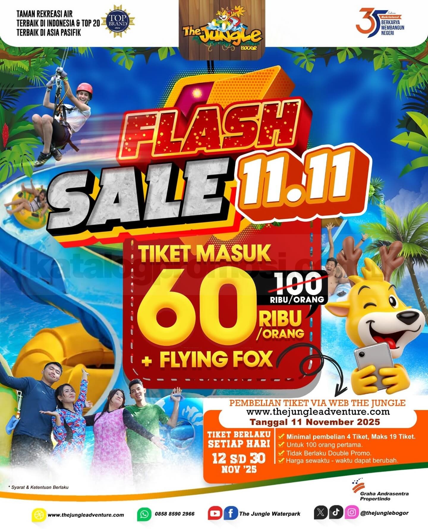 ๐ Cek gambar promo The Jungle Waterpark Bogor Flash Sale 11.11 di bawah ini untuk lihat detail serunya sebelum pesan tiketnya! ๐๐๏ธ