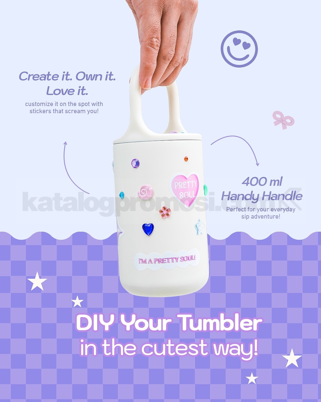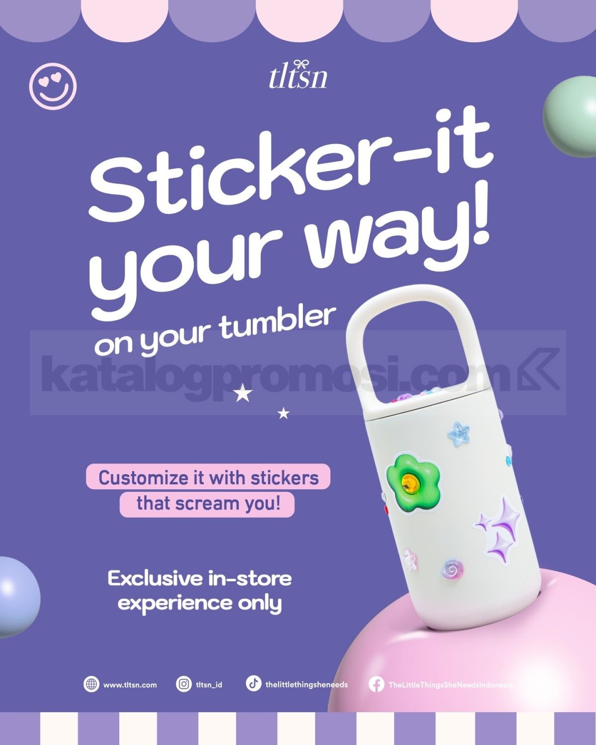 Pilih sendiri stiker-stiker gemes dari koleksi eksklusif kami dan tempel langsung ke tumbler pilihanmu. No rules, no limits—setiap tumbler bakal jadi unik, cuma punya kamu!