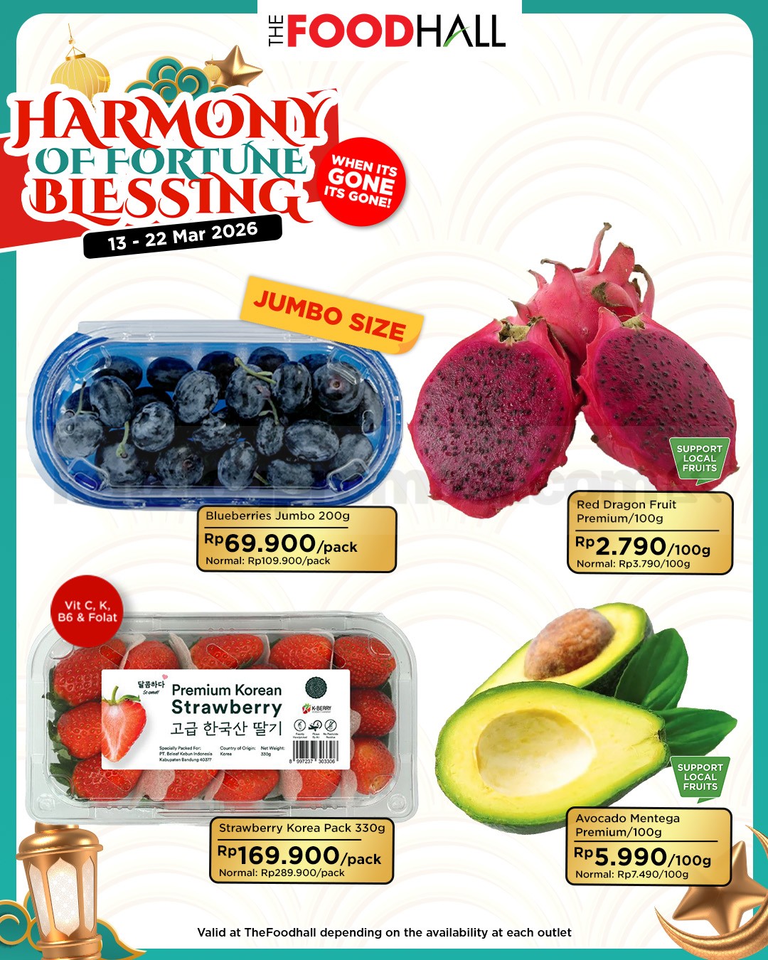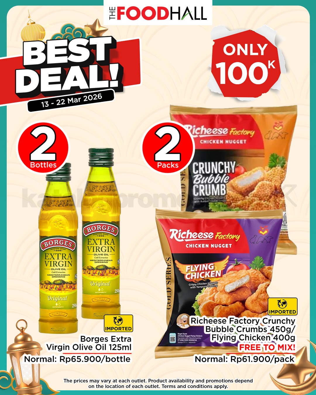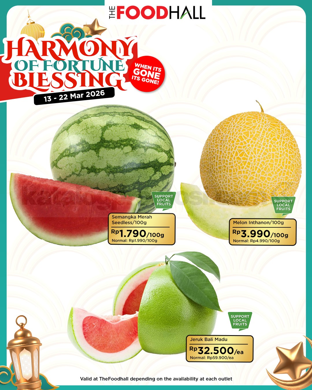 Nikmati pengalaman belanja hemat dan berkualitas di TheFoodhall dan Daily Supermarket. Promo ini berlaku di seluruh cabang dan hanya untuk periode 13-22 Maret 2026. Jadi, jangan sampai ketinggalan ya!