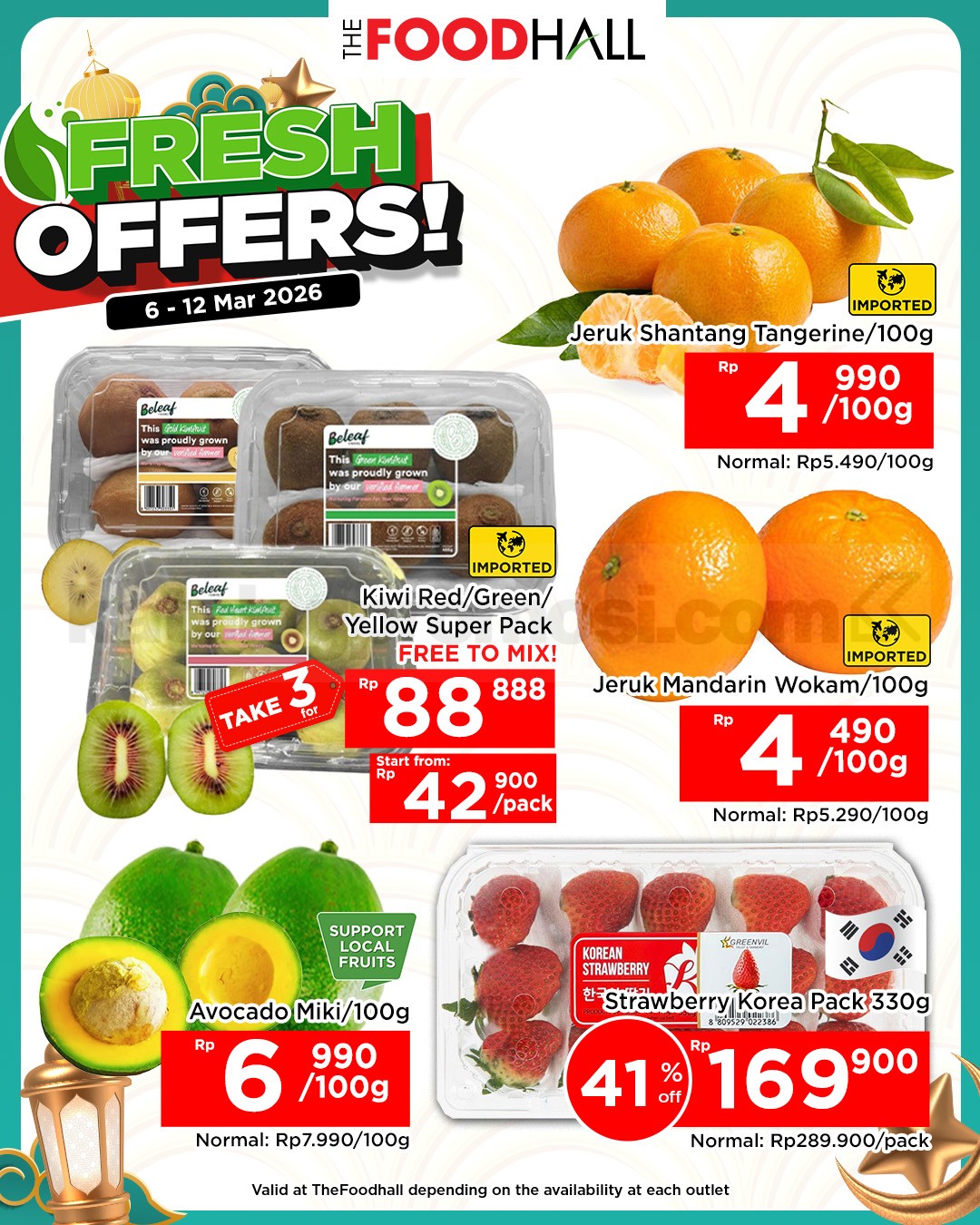 Nikmati pengalaman belanja hemat dan berkualitas di TheFoodhall dan Daily Supermarket. Promo ini berlaku di seluruh cabang dan hanya untuk periode 06-12 Maret 2026. Jadi, jangan sampai ketinggalan ya!