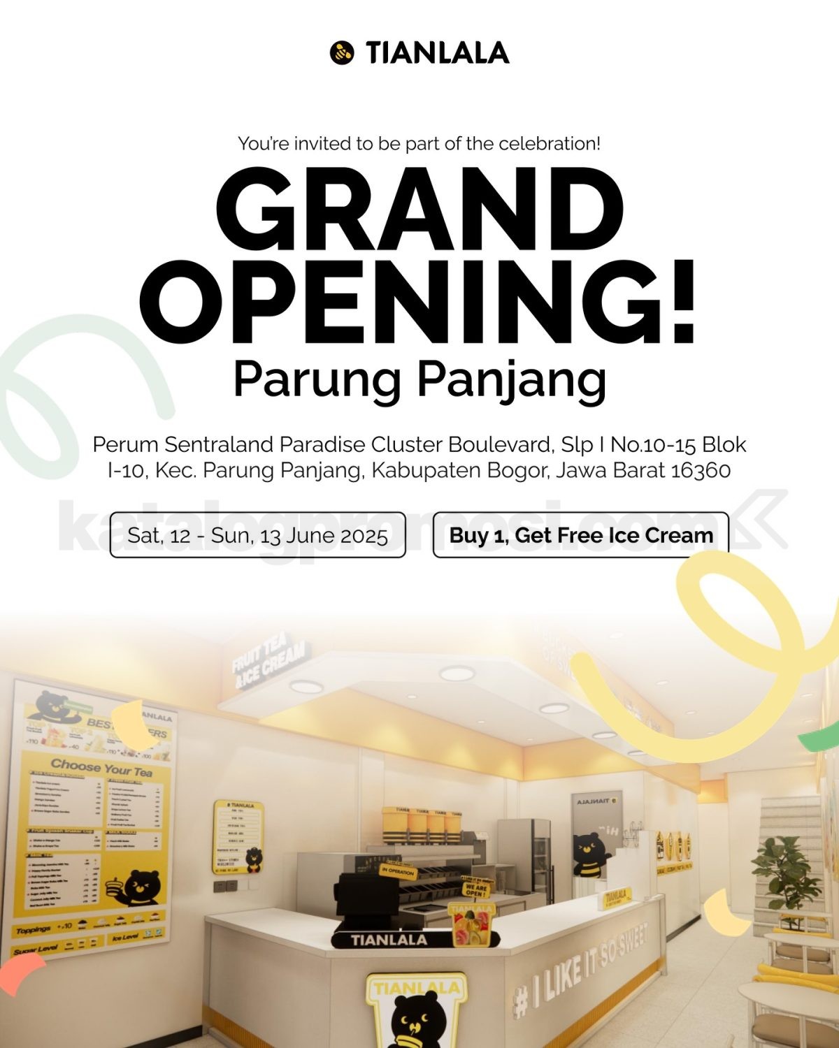 Nikmati Watermelon Explosion dan Ice Lemon Tea hanya dengan harga Rp. 12,-! β¨ Kesempatan seru ini datang untuk kedua kalinya, jadi jangan sampai kelewatan. Segera serbu Tianlala dan nikmati minuman favoritmu sebelum kuota habis!
