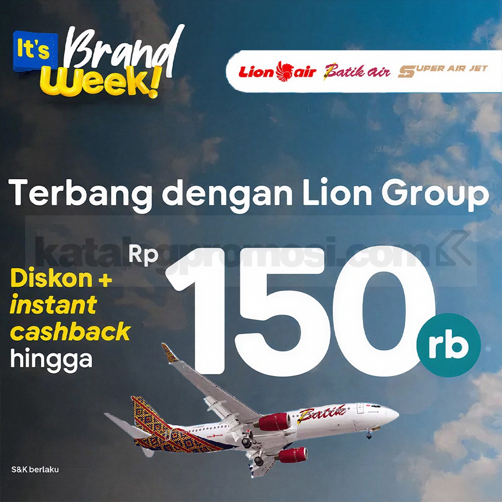 Promo hanya berlaku untuk tiket Lion Air, Batik Air, Super Air Jet, dan Wings Air dalam satu transaksi.