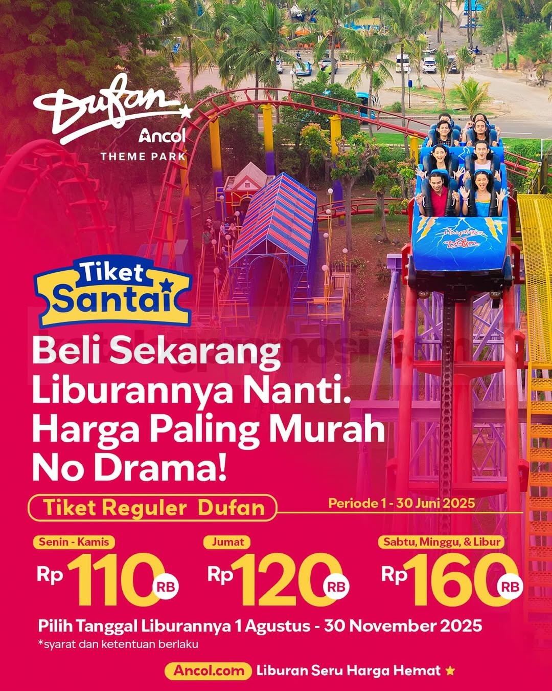 Tiket Santai Dufan ini bikin rencana liburan kamu makin fleksibel, hemat, dan pastinya fun bareng keluarga atau bestie. Beli sekarang liburannya nanti. Harga paling murah no drama! 🎟️✨