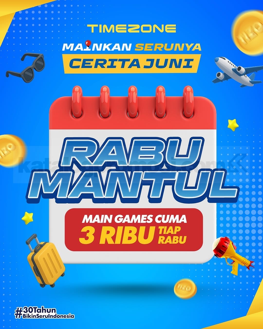 Timezone kembali menghidupkan suasana Rabu dengan promo Timezone Rabu Mantul, di mana pengunjung bisa main video games favorit cukup membayar Rp. 3.000 saja per permainan. Promo ini aktif setiap hari Rabu dan memberikan kesempatan untuk menikmati mesin video games tertentu dengan harga sangat terjangkau tanpa syarat pembelian lain.
