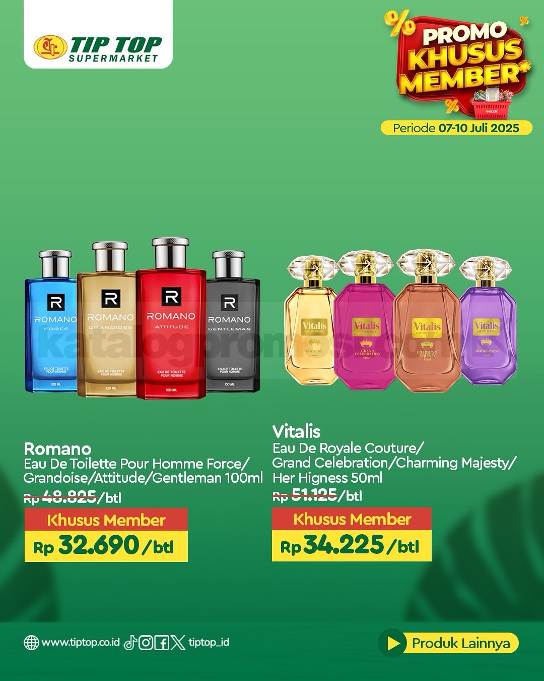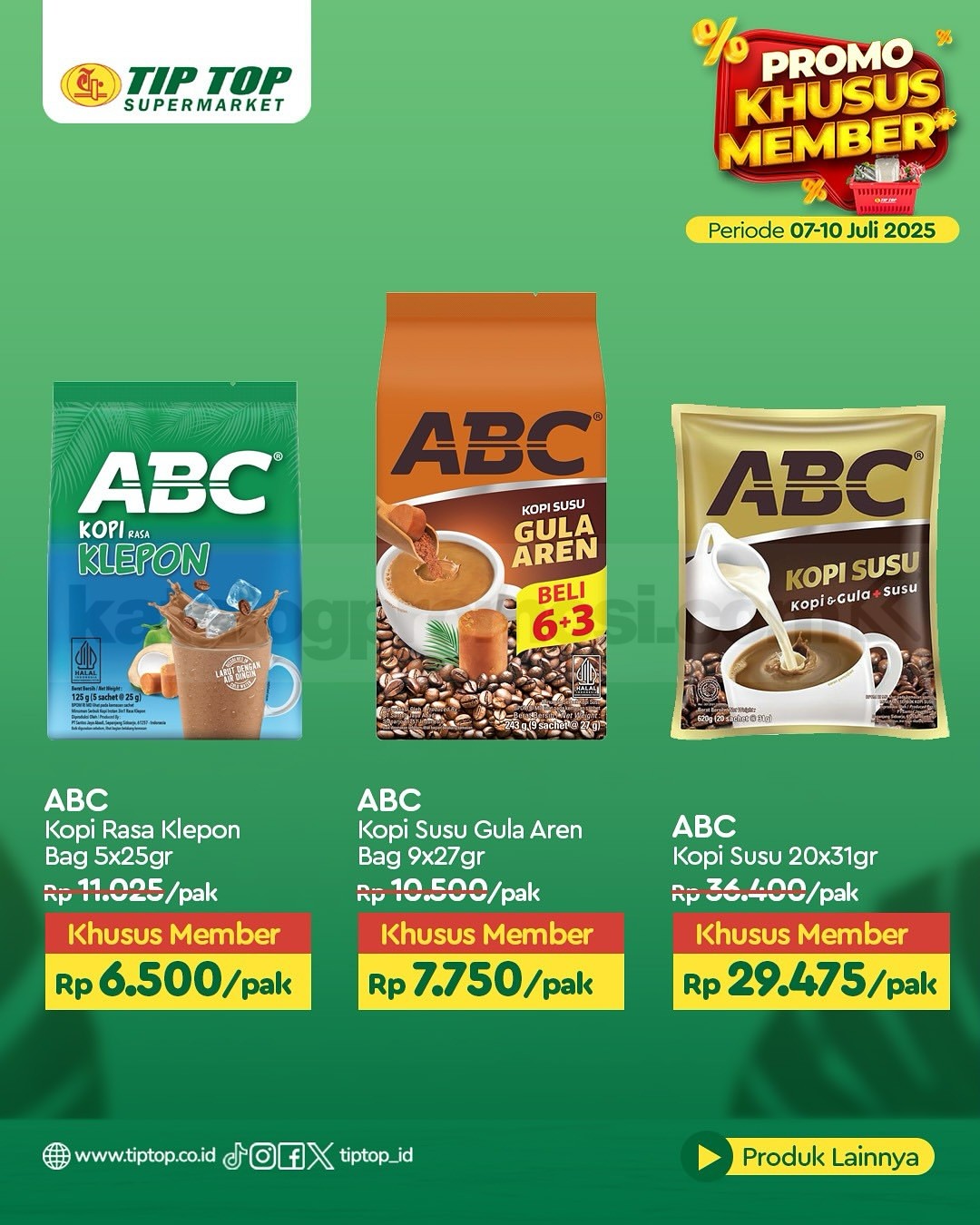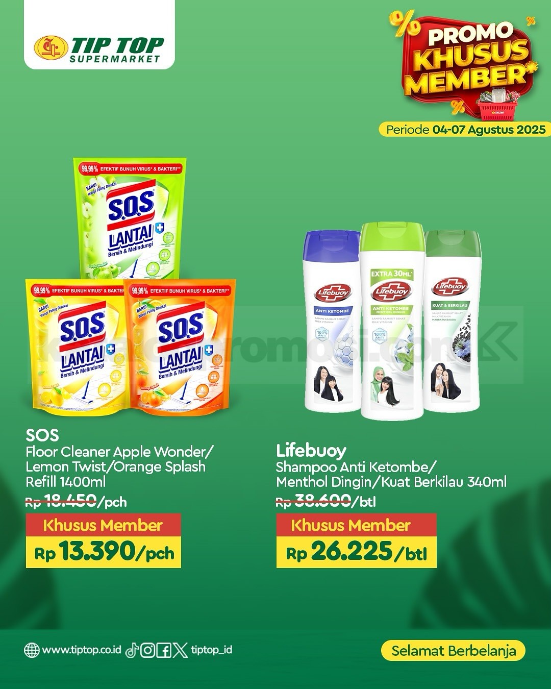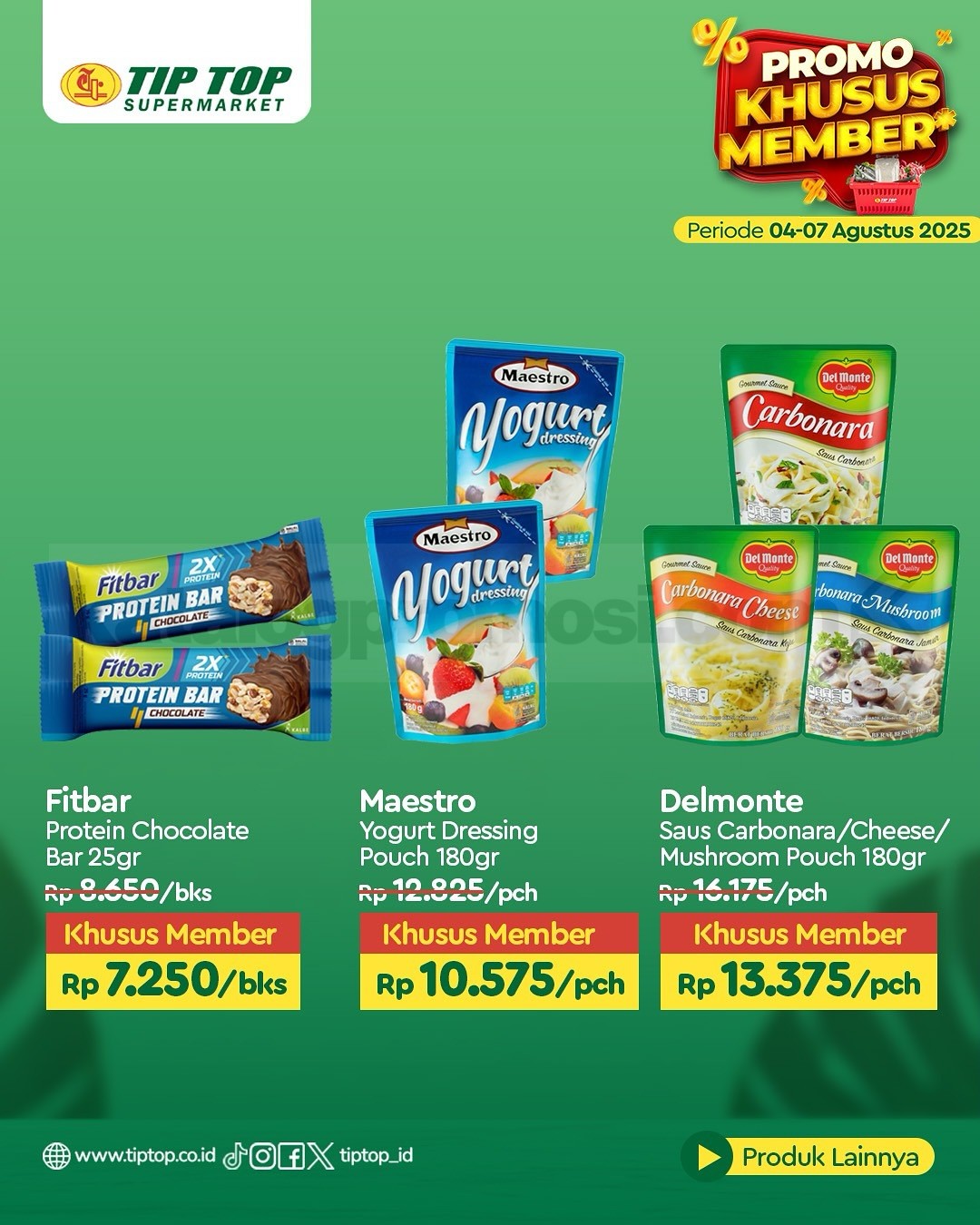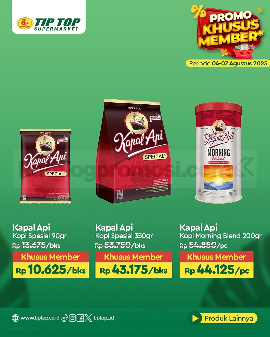 Promo ini berlaku di seluruh cabang TIP TOP Supermarket dan juga online di shop.tiptop.co.id. Khusus untuk member TIP TOP GOLD. Daftar bisa lewat WhatsApp 0812-2080-2080 atau kunjungi tiptop.co.id/membership.