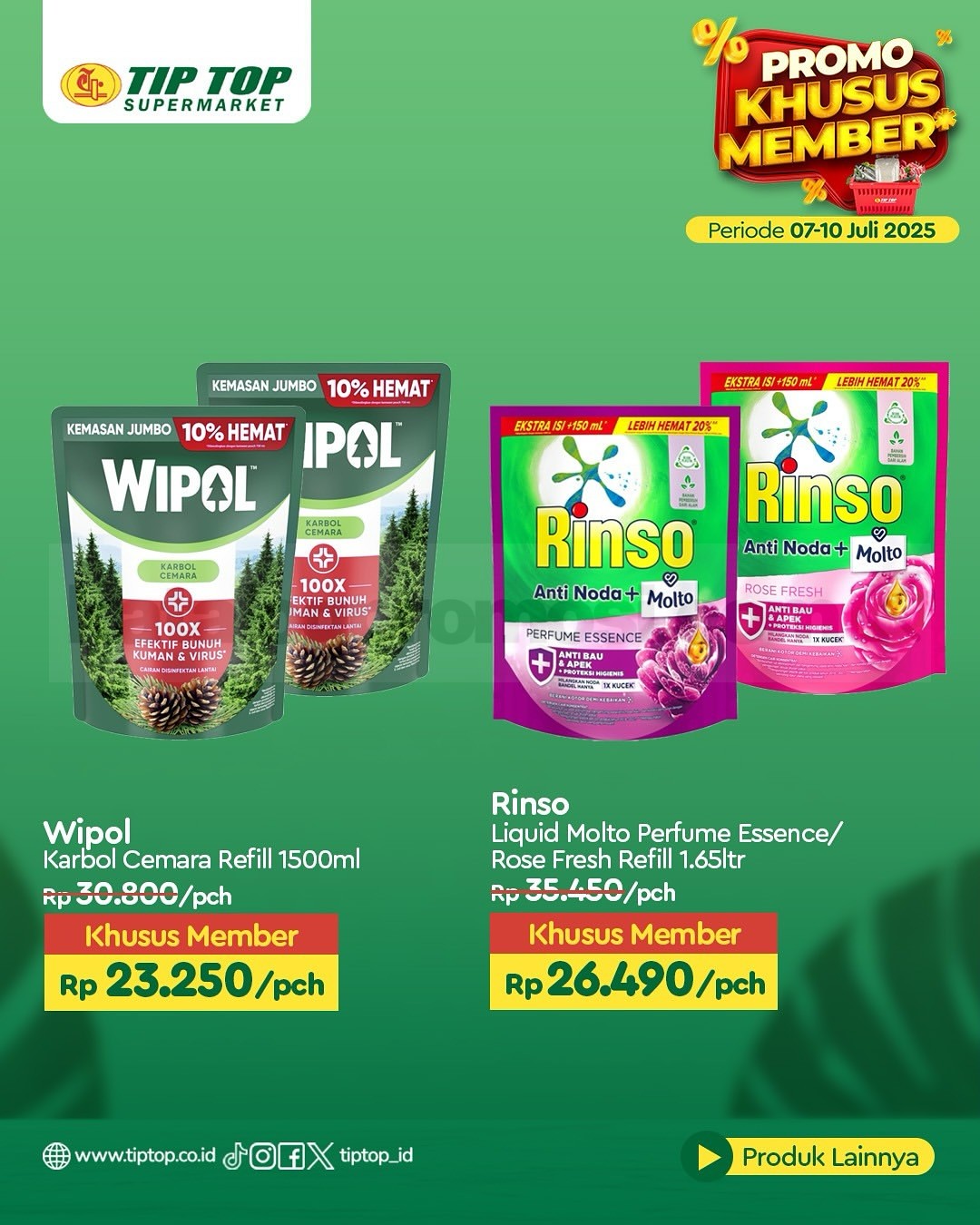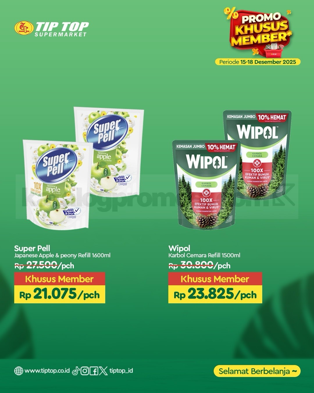 Belanja kebutuhan rumah tangga sekarang makin hemat dengan promo tip top swalayan khusus member periode 15-18 Desember 2025! Buat kamu pemilik TIP TOP Membership Gold (kartu maupun digital), bisa nikmati harga spesial untuk berbagai produk unggulan berikut: