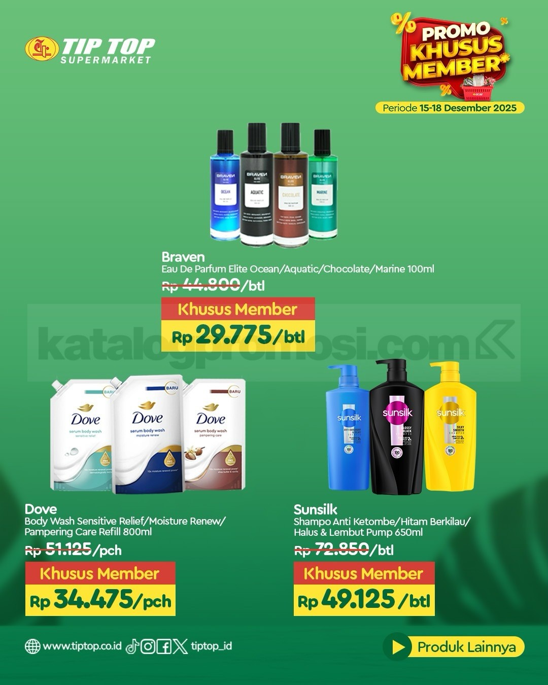 Promo TIP TOP Swalayan Khusus Member Periode 15-18 Desember 2025 hadir dengan diskon minyak goreng, lotion, susu, dan kebutuhan rumah