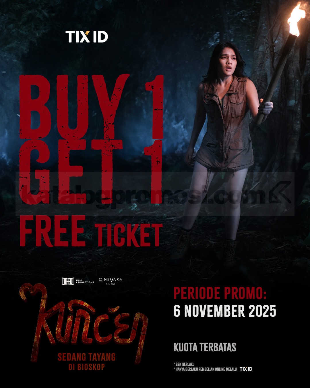 Promo TIX ID Beli 1 Gratis 1 Film Kuncen nikmati 1 tiket gratis setiap beli 1 tiket mulai 6 November 2025 di seluruh bioskop Indonesia.