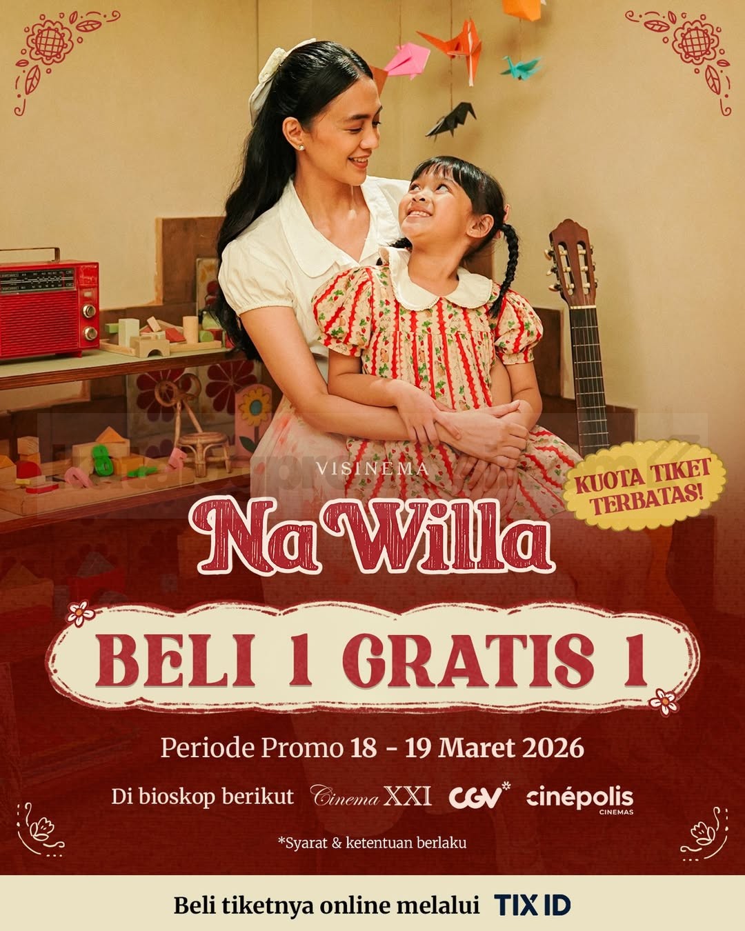 Promo TIX ID Beli 1 Gratis 1 Tiket Na Willa nikmati nonton hemat via aplikasi berlaku mulai tanggal 18 Maret 2026 – 19 Maret 2026 di seluruh Indonesia