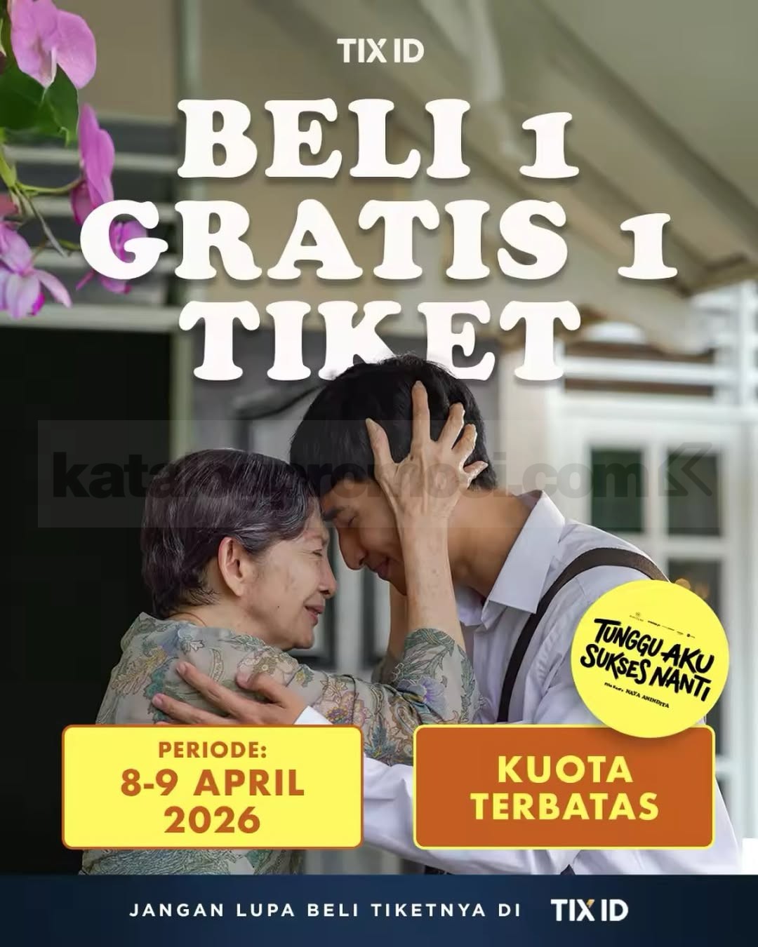 Promo TIX ID Beli 1 Gratis 1 Tiket Tunggu Aku Sukses Nanti ini cocok banget buat kamu yang mau nonton hemat bareng orang terdekat. Selama kuota masih ada, langsung manfaatkan promonya lewat aplikasi TIX ID dan amankan kursi favoritmu sekarang juga!
