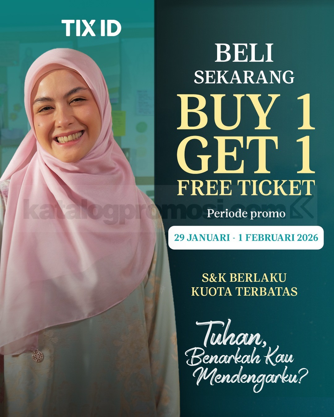 Promo TIX ID Buy 1 Get 1 Free Tiket Tuhan Benarkah Kau Mendengarku, nonton berdua bayar satu tiket via aplikasi TIX ID berlaku mulai tanggal 29 Januari 2026 – 1 Februari 2026.