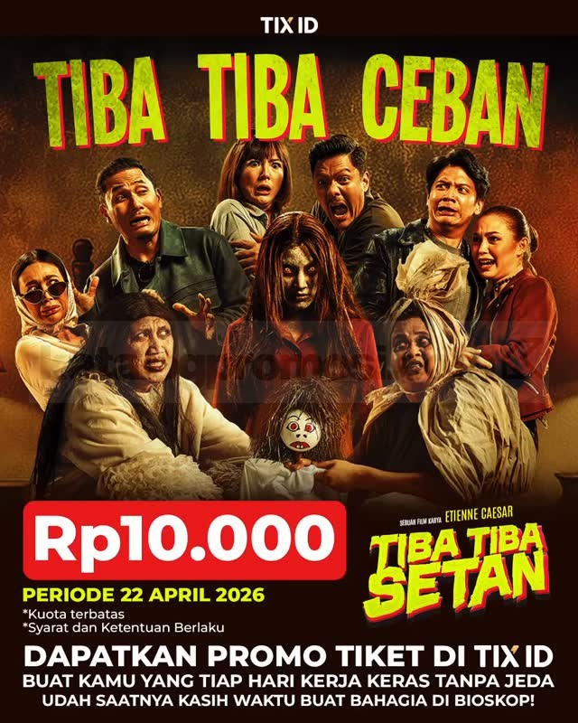 Promo TIX ID Tiket Film Tiba Tiba Setan Rp. 10.000 hemat tiket nonton via aplikasi berlaku mulai tanggal 22 April 2026 di seluruh outlet