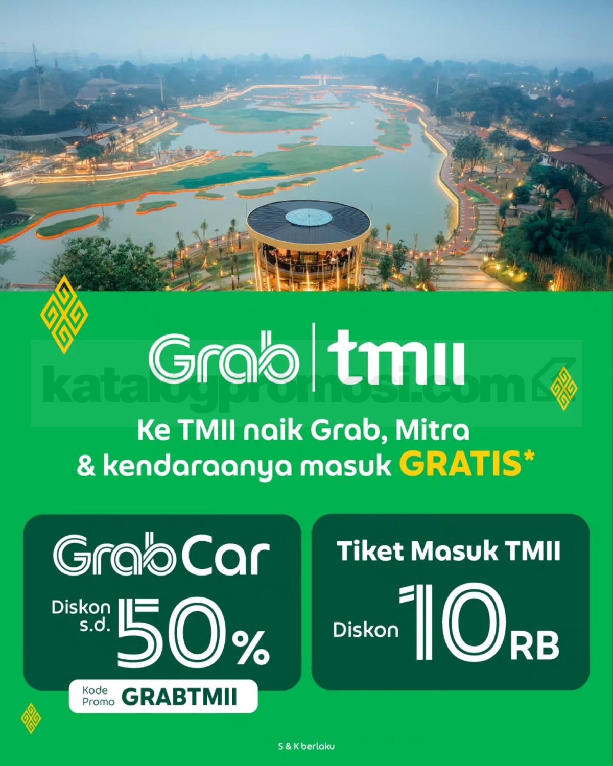 Promo TMII Grab Diskon s.d. 50% pakai GrabCar dengan kode GRABTMII plus diskon tiket masuk TMII Rp. 10.000 berlaku 19 Januari – 31 Maret 2026.