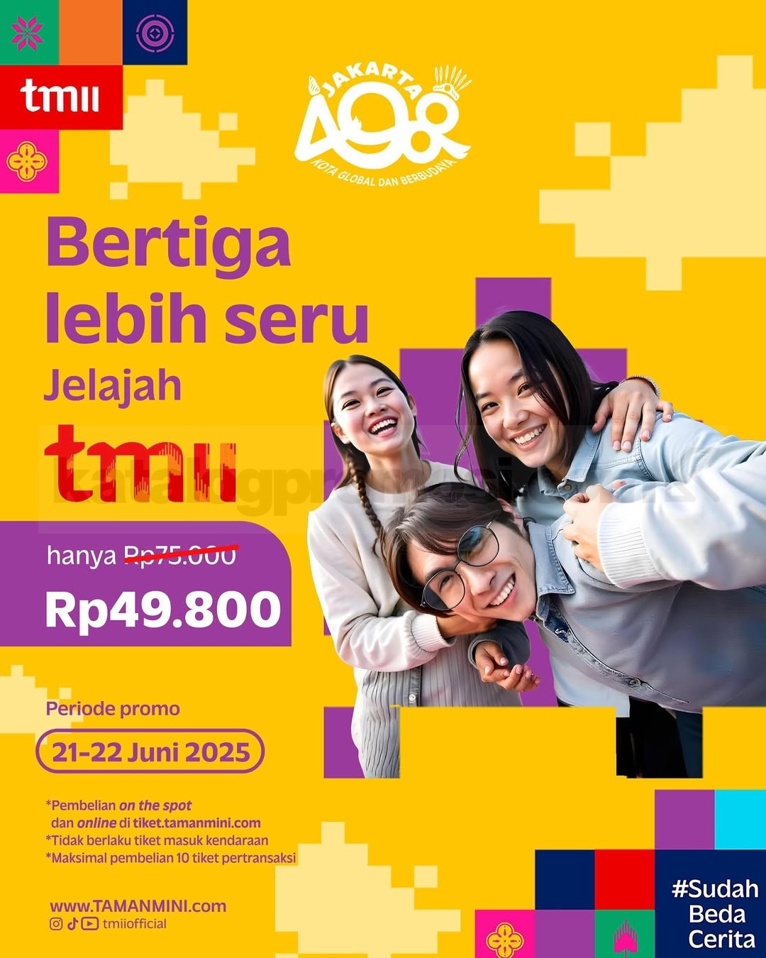 🎫 Promo Bertiga Jelajah TMII – Rp49.800 (dari Rp75.000)
