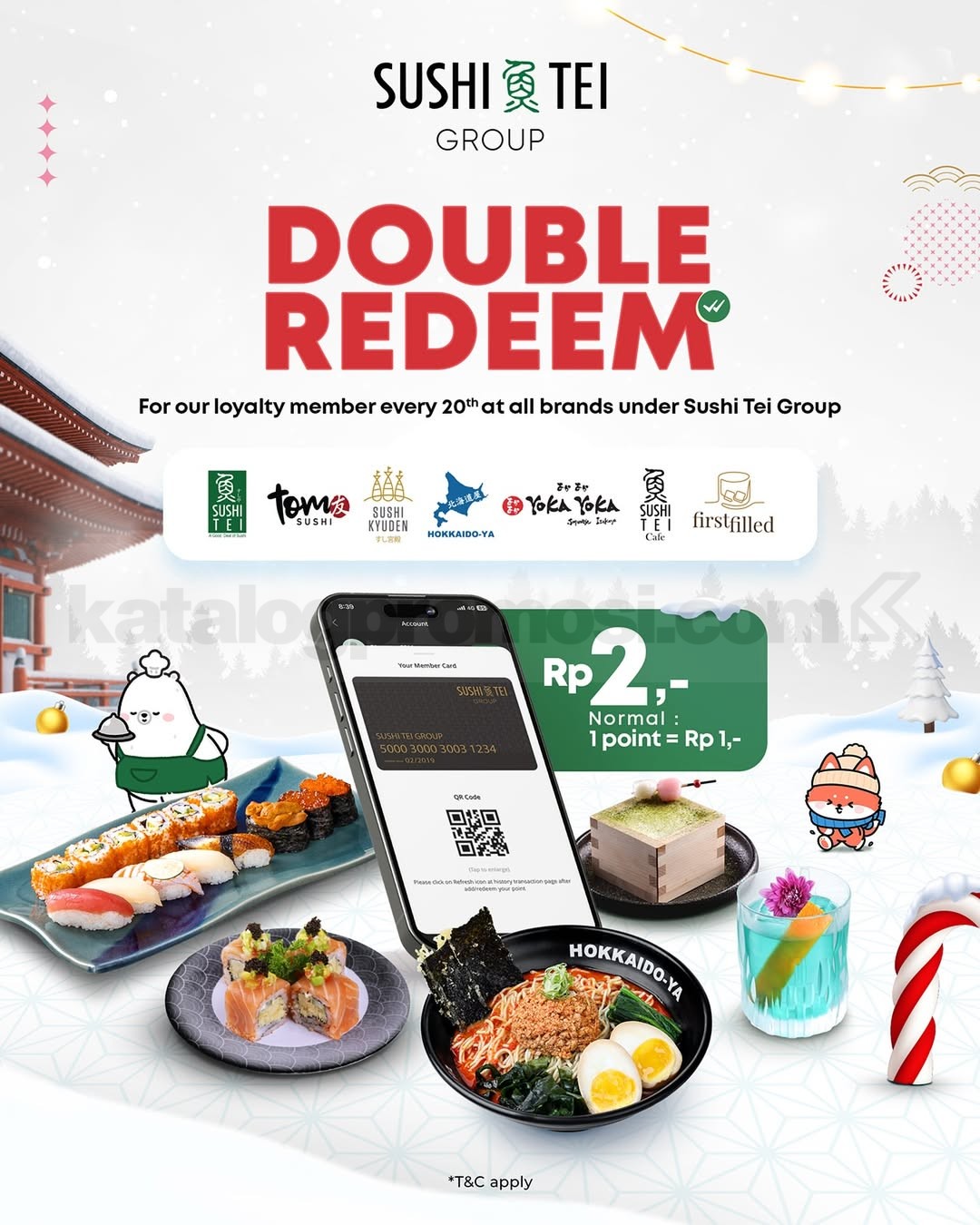 ๐ Cek gambar promo Tom Sushi Double Redeem 1 Point Rp. 2 di bawah ini untuk lihat detail lengkap dan persiapan sebelum ke outlet!