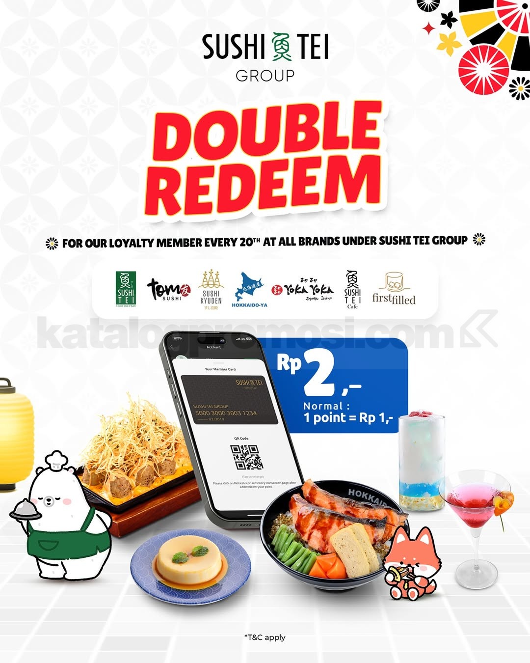 Promo Tom Sushi Double Redeem 1 Point Rp. 2 tukar poin loyalty jadi dua kali lebih bernilai untuk dine-in dan takeaway berlaku mulai tanggal 20 Januari 2026 di seluruh outlet.