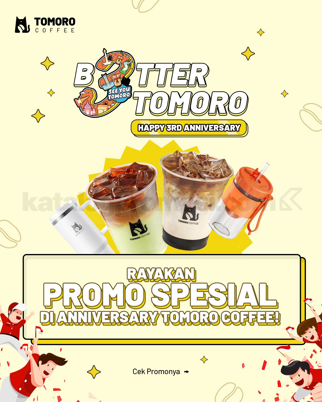 👉 Cek gambar promo Tomoro Coffee anniversary ke-3 di bawah ini untuk lihat menu, harga spesial, dan promo lengkapnya!