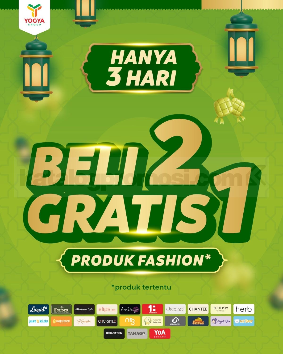 - Promo beli 2 GRATIS 1 berlaku untuk produk fashion.