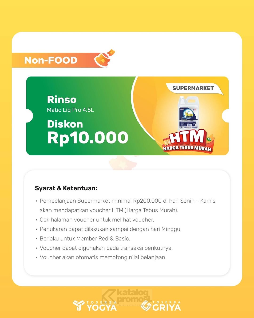 • Berlaku di seluruh outlet TOSERBA YOGYA dan GRIYA selama periode promo.