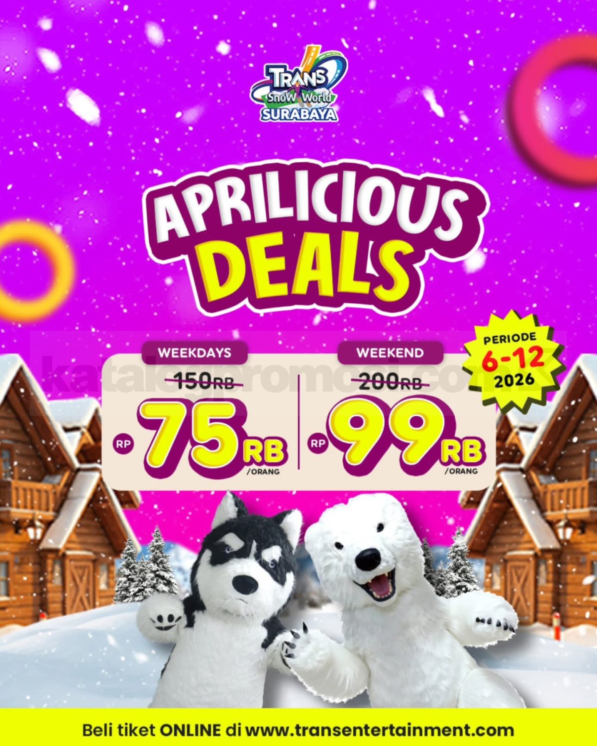 Promo Trans Snow World Surabaya Aprilicious Deals Rp. 75.000 nikmati tiket hemat main salju berlaku 6 April 2026 – 12 April 2026.