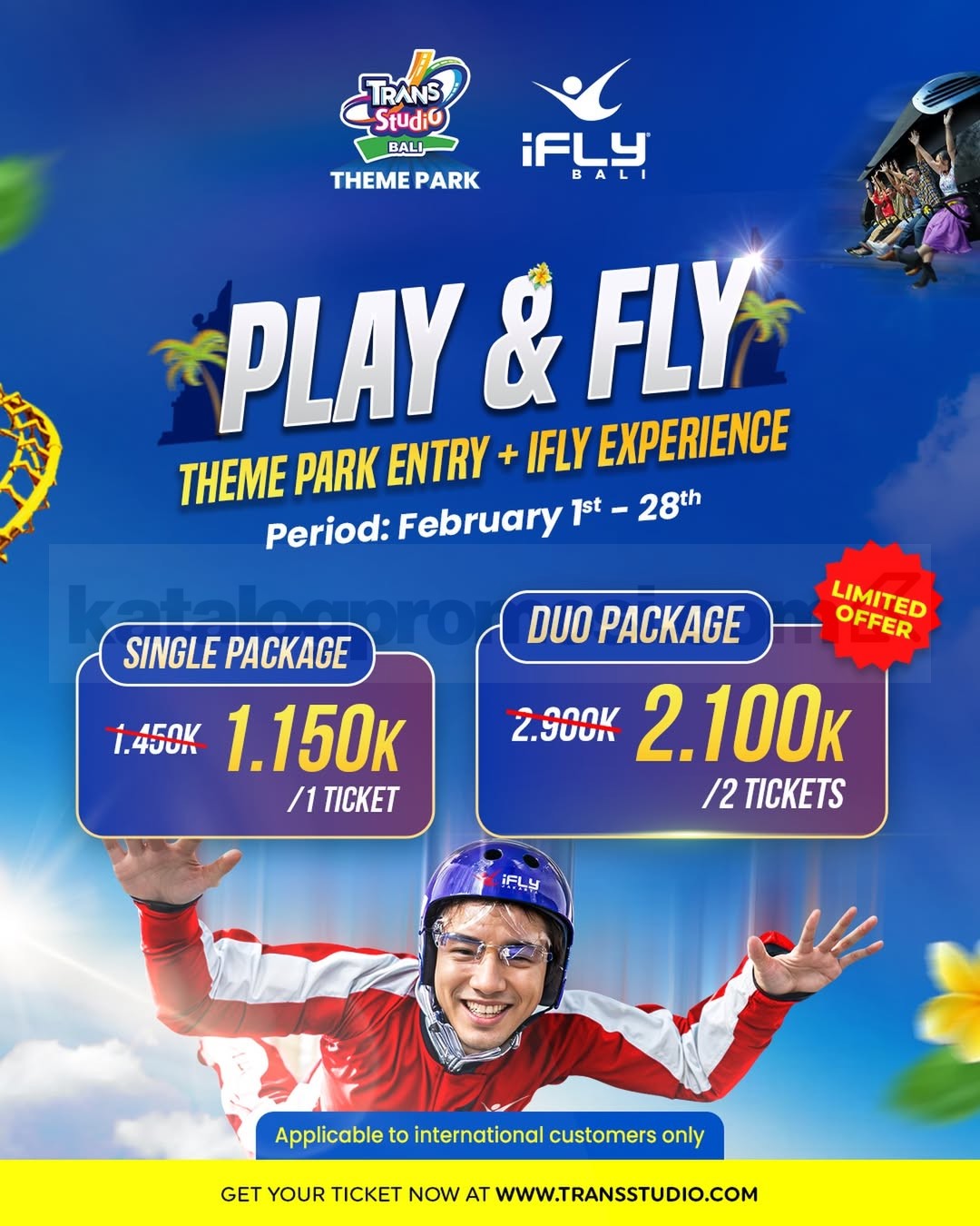 Paket Play n Fly ini cocok buat kamu yang ingin menikmati berbagai wahana Trans Studio Bali dengan harga lebih hemat. Jangan lewatkan periode promonya dan pastikan tiket sudah diamankan sebelum jadwal bermain kamu tiba.