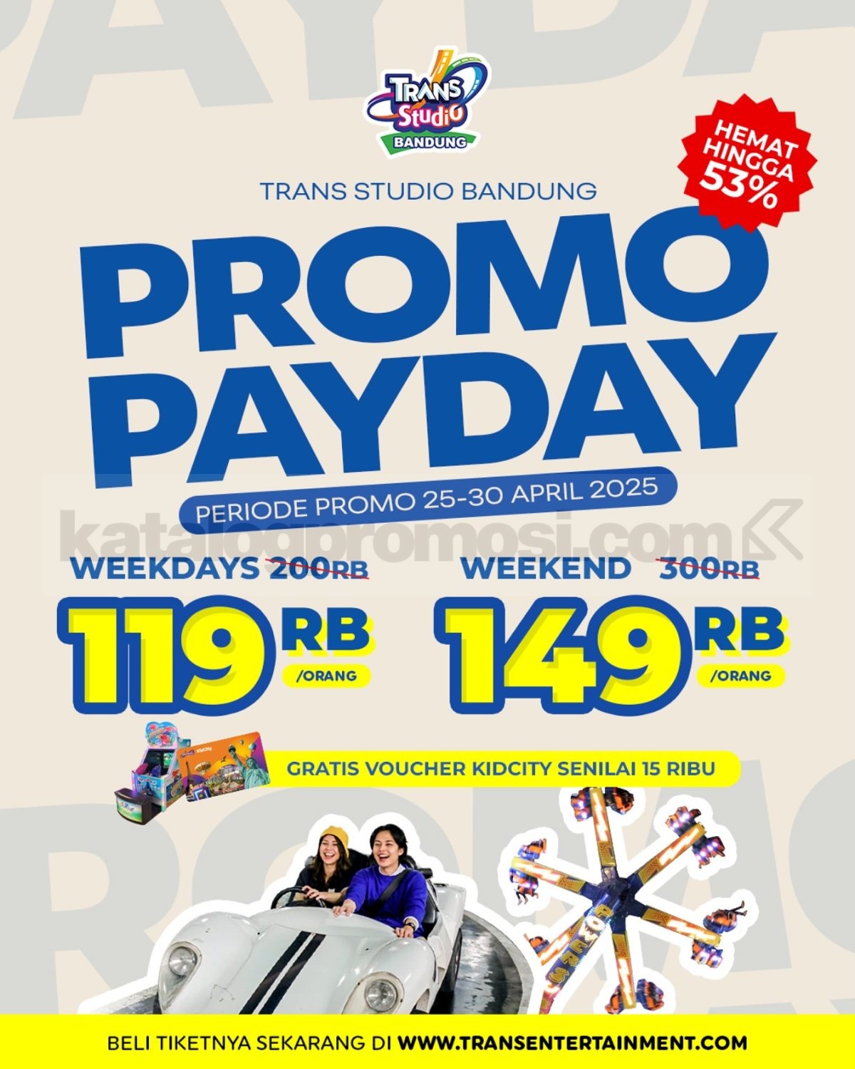 Promo Trans Studio Bandung Payday Ber-3 mulai Rp. 250.000, weekdays hemat Rp. 250RB & weekend Rp. 495RB, berlaku 25β30 November 2025