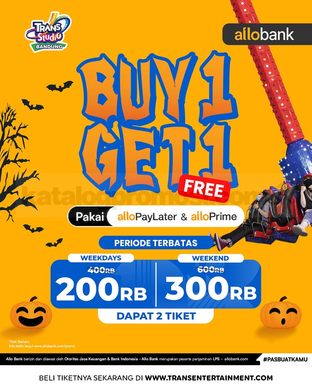 Promo Trans Studio Bandung Beli 1 Gratis 1 Tiket cuma bayar Rp200rb untuk 2 tiket weekdays & Rp300rb saat weekend dengan AlloBank.