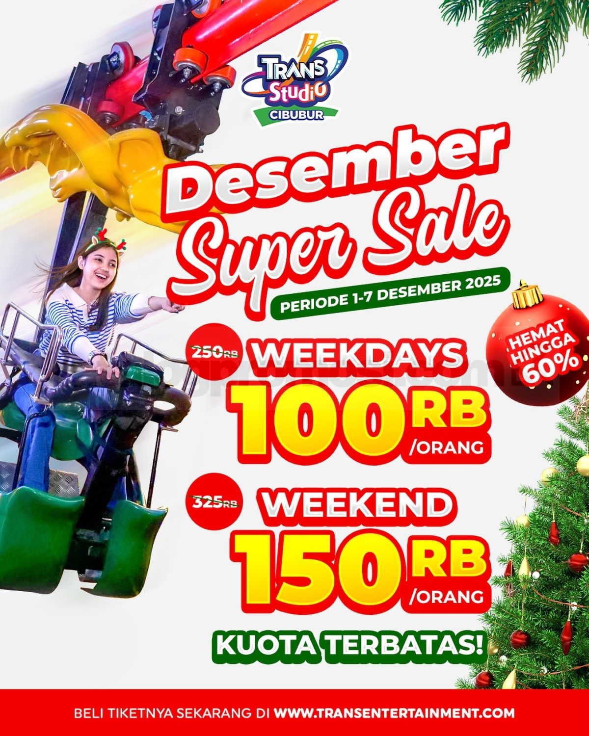 Cek promo ini sekarang dan rasakan keseruan Trans Studio Cibubur Desember Super Sale tiket mulai Rp. 100.000 langsung di www.transentertainment.com!