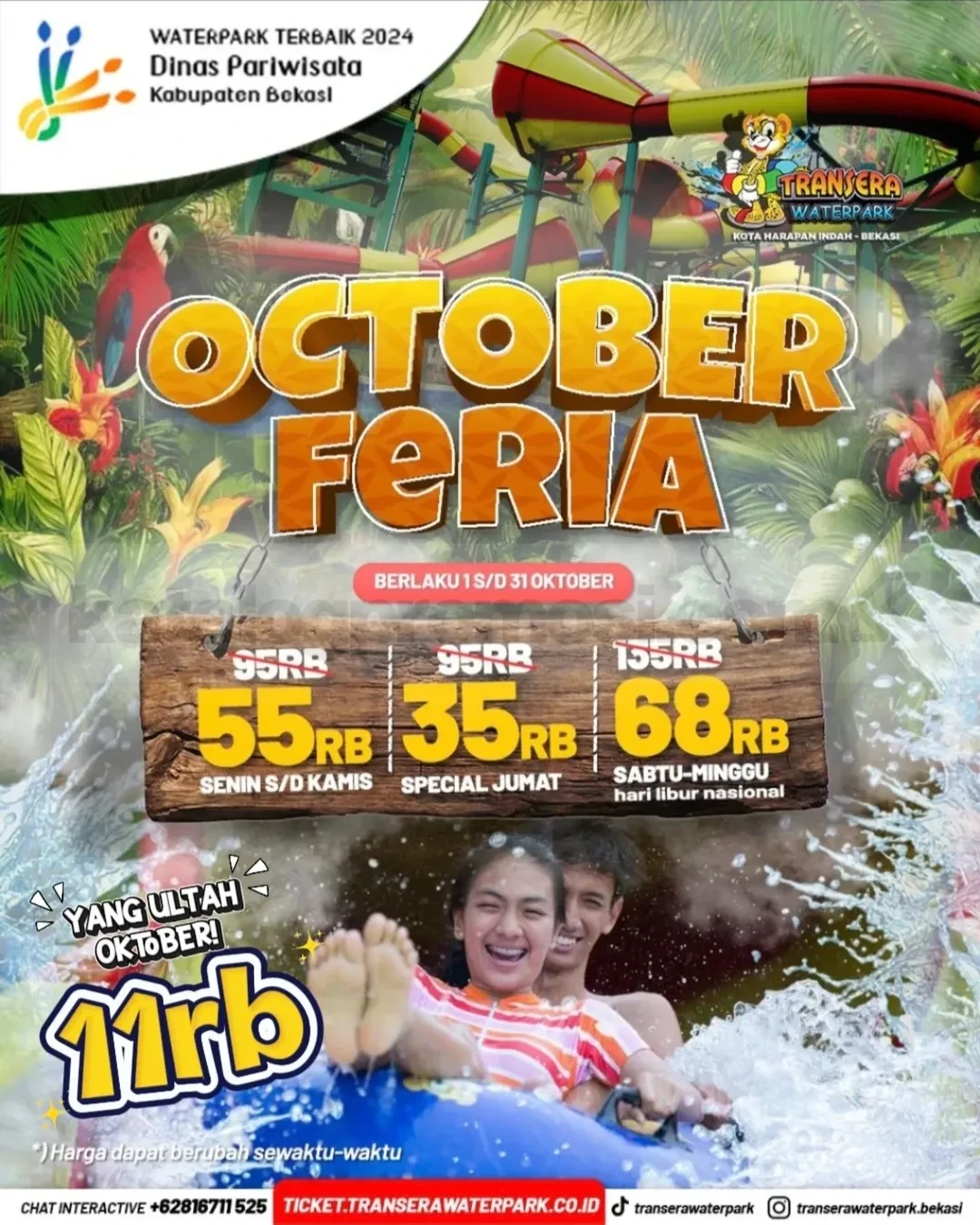 Wah, Oktober ini makin greget di Transera Waterpark dengan Promo Transera Waterpark October Feria yang bikin kamu nggak mau ketinggalan! ๐ฆโจ