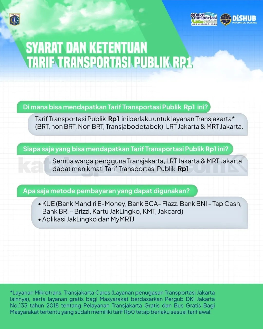 👉 Cek gambar promo transportasi publik Rp1 di bawah ini untuk lihat informasi lengkap moda, metode pembayaran, dan ketentuan yang berlaku!