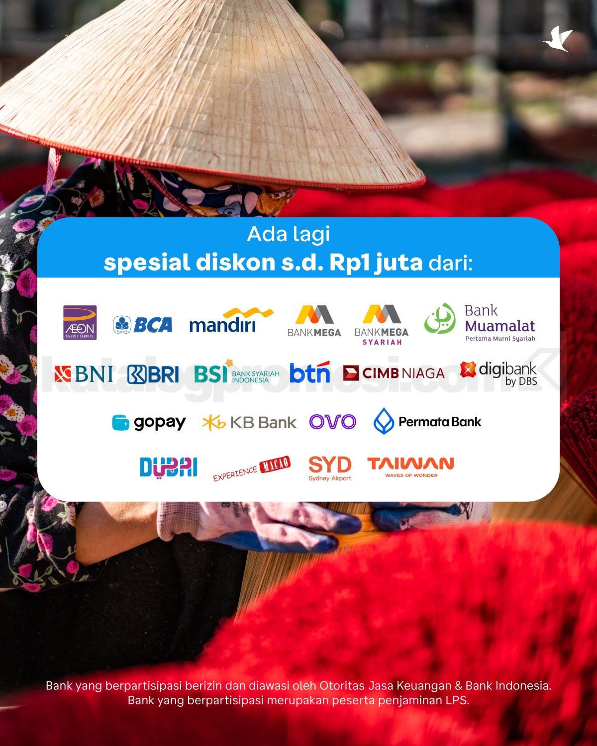 Promo berlaku untuk rute pilihan sesuai ketentuan Traveloka dan kuota terbatas.