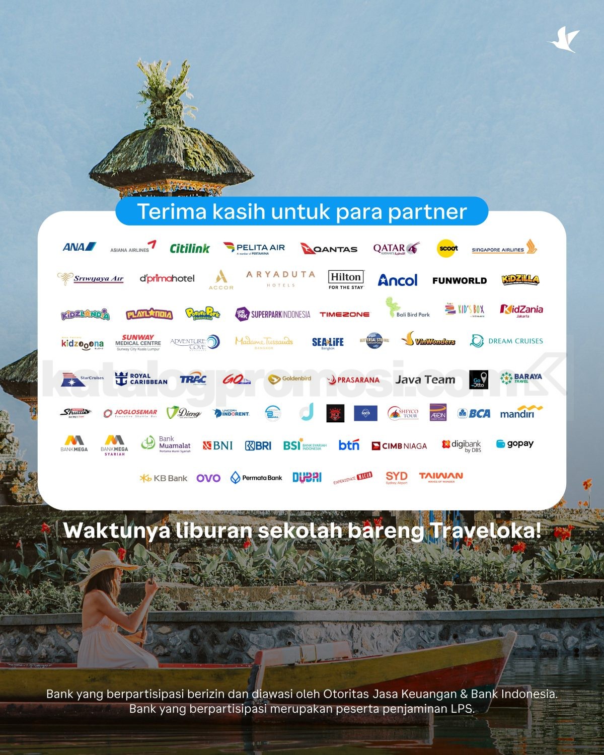 Promo ini berlaku eksklusif di aplikasi dan website Traveloka, jadi pastikan kamu udah pasang reminder biar gak FOMO kehilangan deal terbaik tahun ini! 💙
