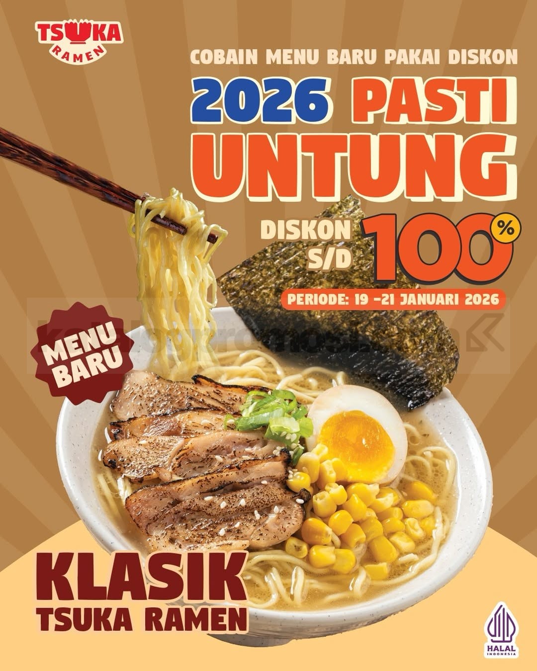 Promo ini berlaku di seluruh outlet Tsuka Ramen hanya Senin-Rabu, 19-21 Januari 2026, jadi jangan sampai terlewat!
