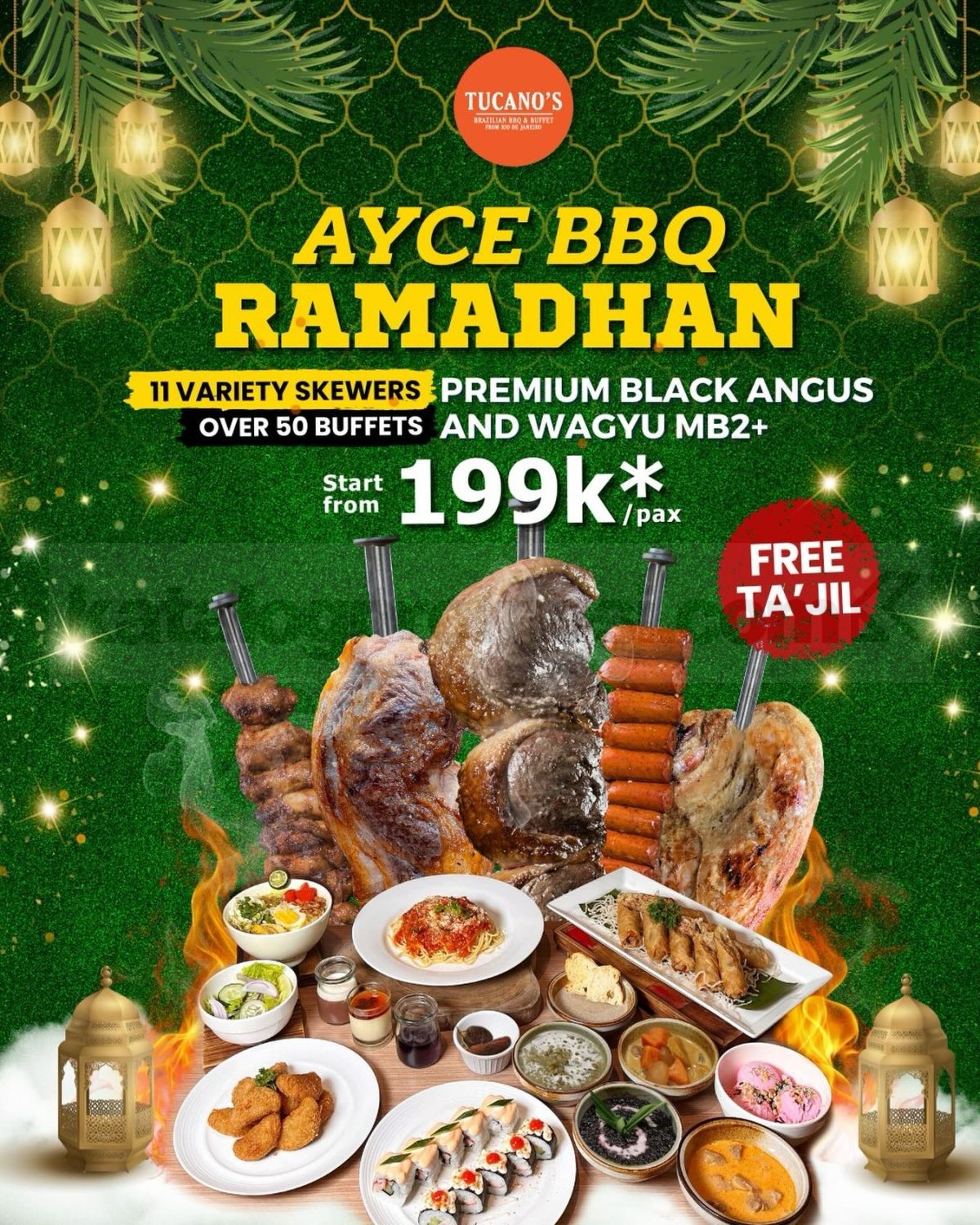Promo Tucano’s AYCE BBQ Ramadhan mulai Rp. 199.000 per pax dengan daging premium, lebih dari 50 menu buffet, dan FREE ta’jil selama Ramadhan.