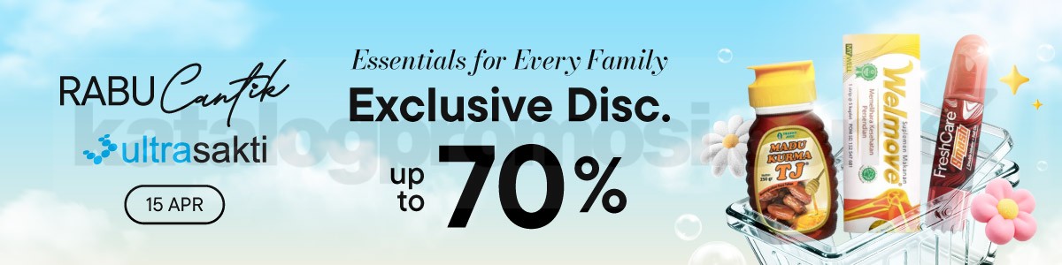 Yuk manfaatkan promo Ultra Sakti Rabu Cantik ini sebelum waktunya habis. Kesempatan langka buat dapetin produk kesehatan favorit dengan harga miring, jadi jangan sampai kelewatan ya!