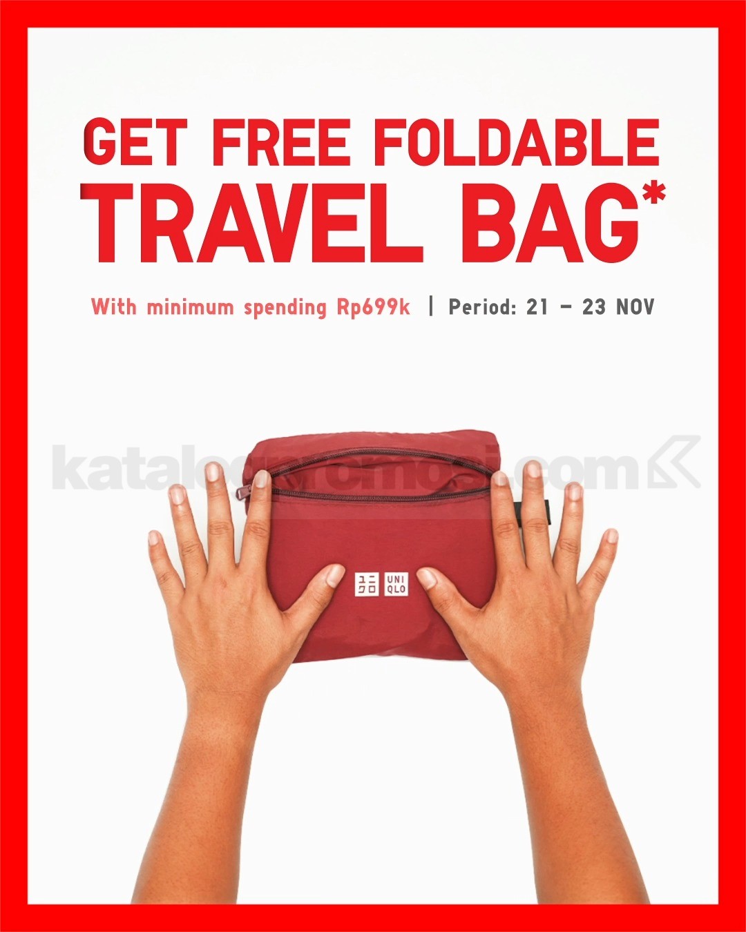 Promo UNIQLO Get FREE Foldable Travel Bag*, Minimal belanja Rp 699K berlaku tanggal 21β23 November 2025