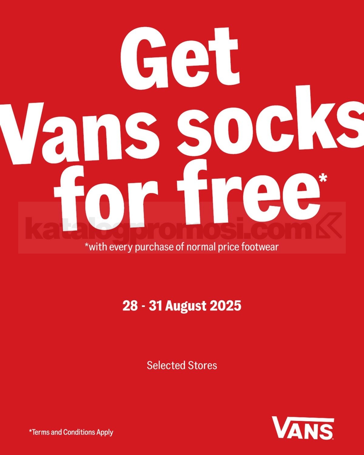 Promo Vans beli sepatu dapet bonus kaos kaki gratis berlaku 28 – 31 Agustus 2025 di Vans Store Indonesia tertentu.