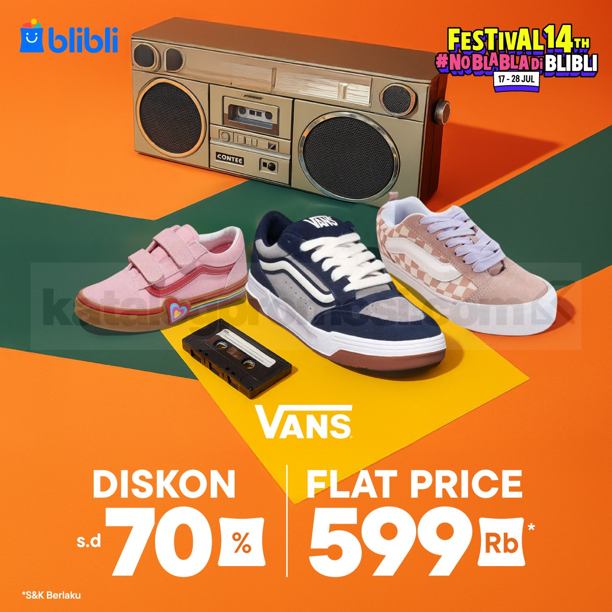 Promo VANS di Blibli 14th Anniversary – Diskon hingga 70% dan Flat Price 599K.