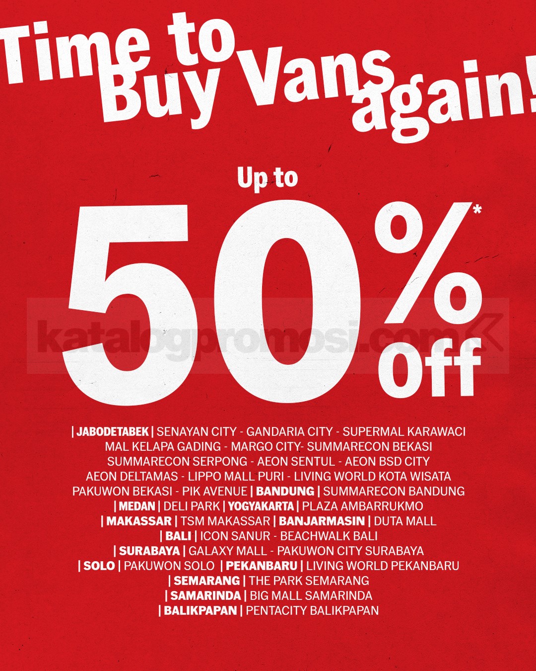 Ini dia momen yang ditunggu pecinta Vans! Promo Vans Mid Season Deal lagi berlangsung di seluruh Indonesia, waktunya dapetin diskon besar dan bonus spesial yang bikin belanja makin seru. 🎉