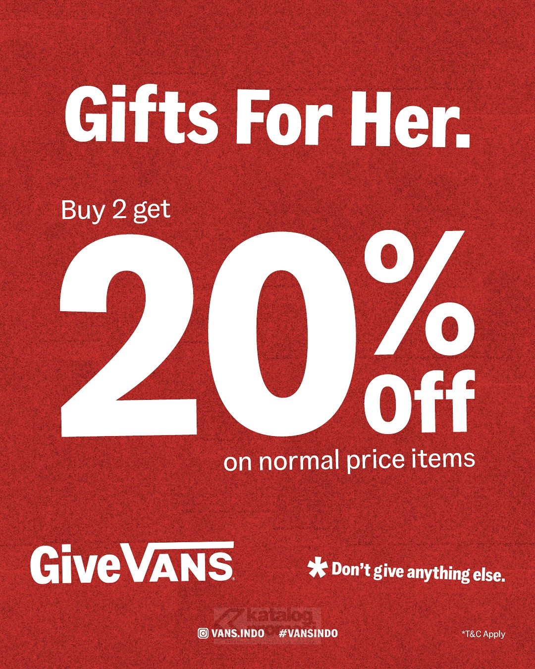 Promo berlaku di seluruh Vans Store Indonesia dengan pengecualian beberapa lokasi, yaitu: