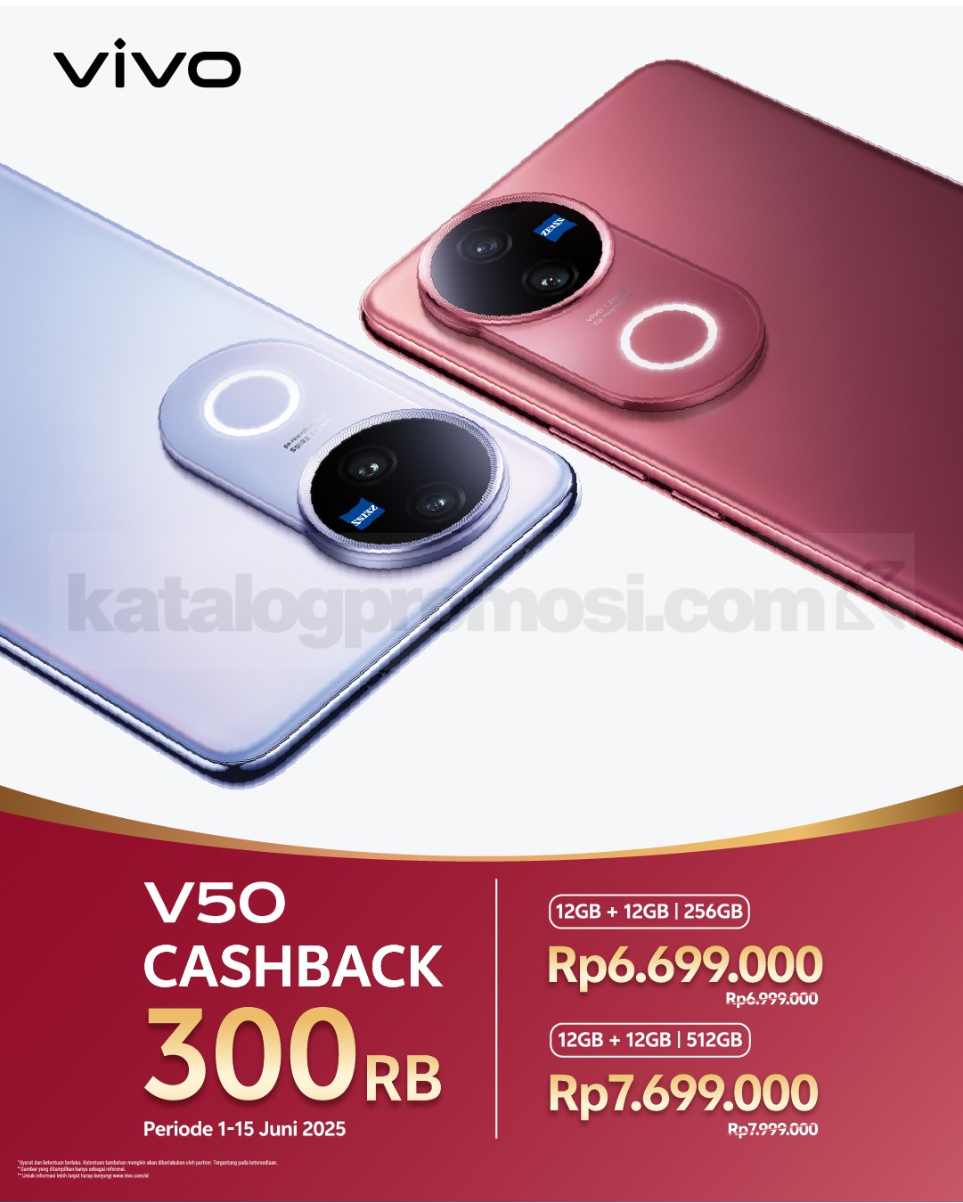 - Promo cashback berlaku untuk pembelian vivo V50 pada periode 1–15 Juni 2025