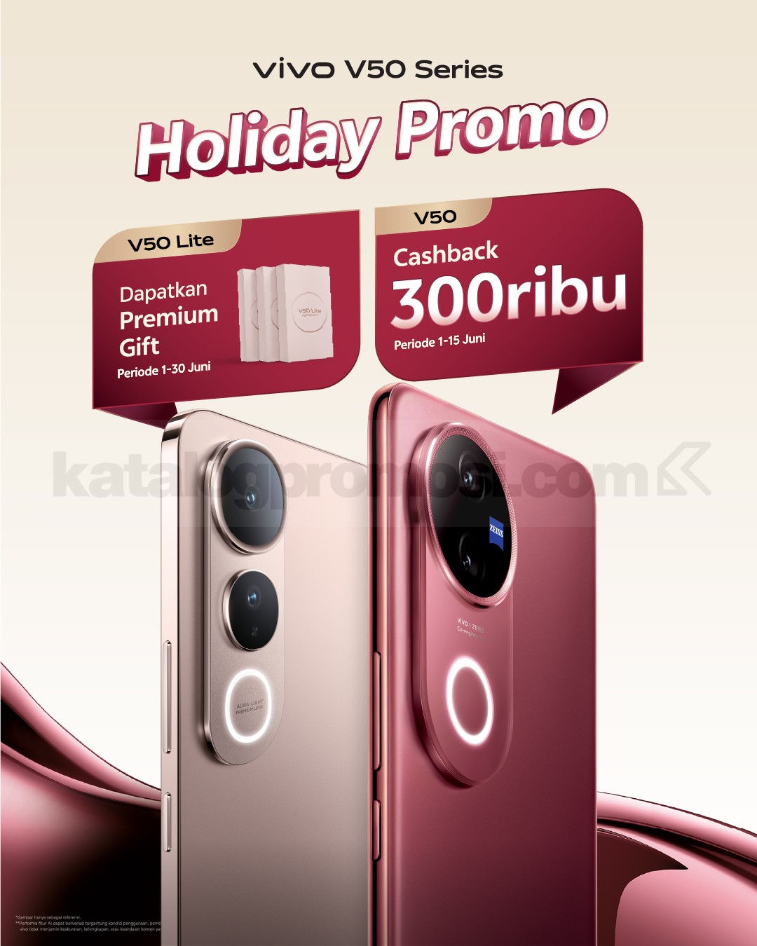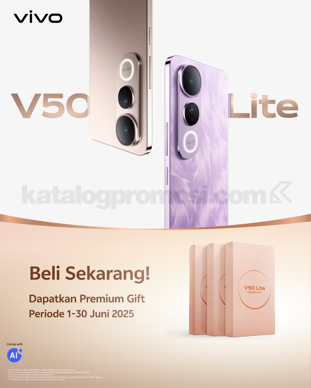 - Promo premium gift berlaku untuk pembelian vivo V50 Lite pada periode 1–30 Juni 2025