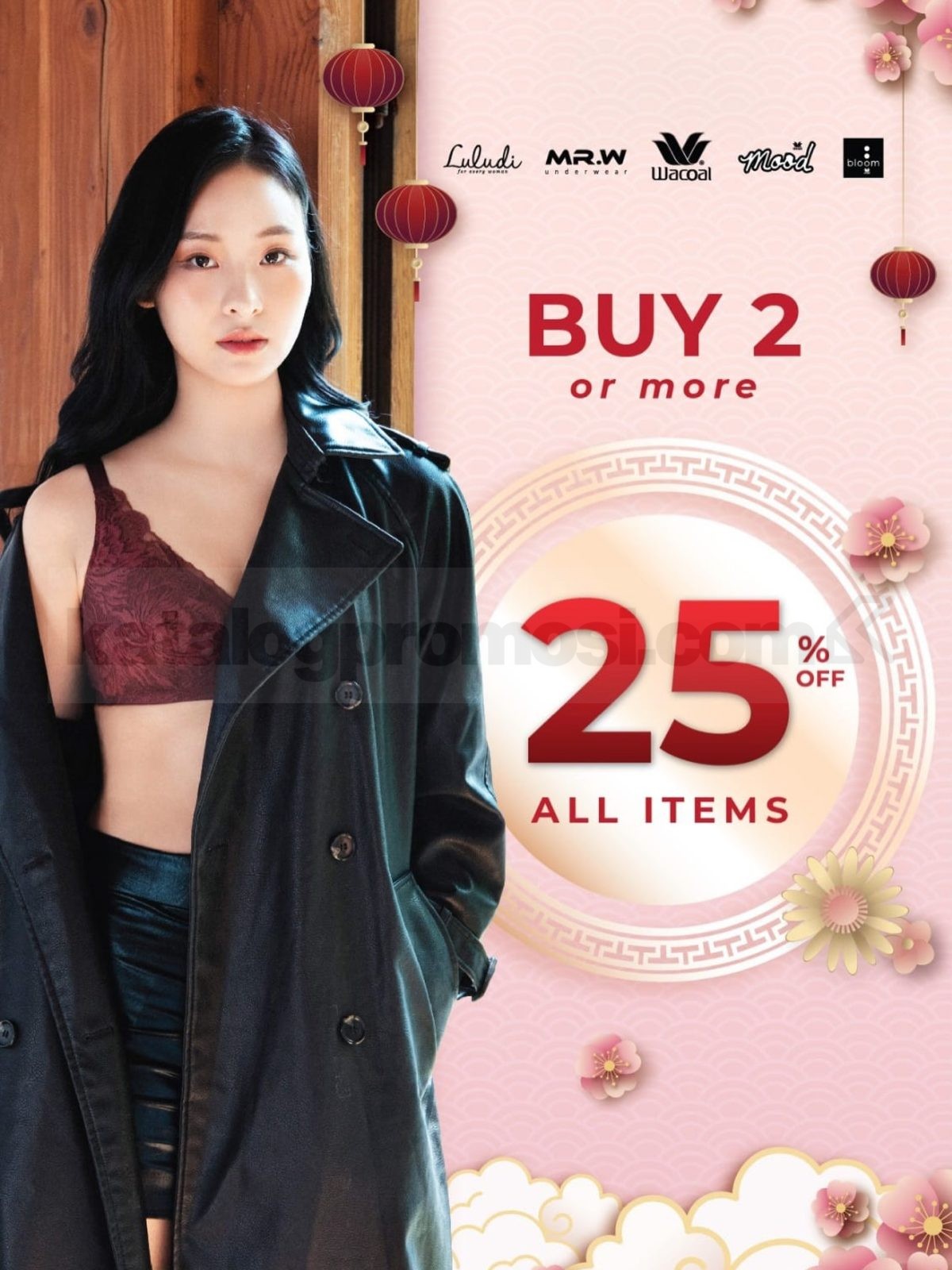 Promo Wacoal Lunar New Year dan Valentine beli 2 atau lebih diskon 25% untuk semua item berlaku sampai 17 Februari 2026 di outlet Wacoal tertentu.