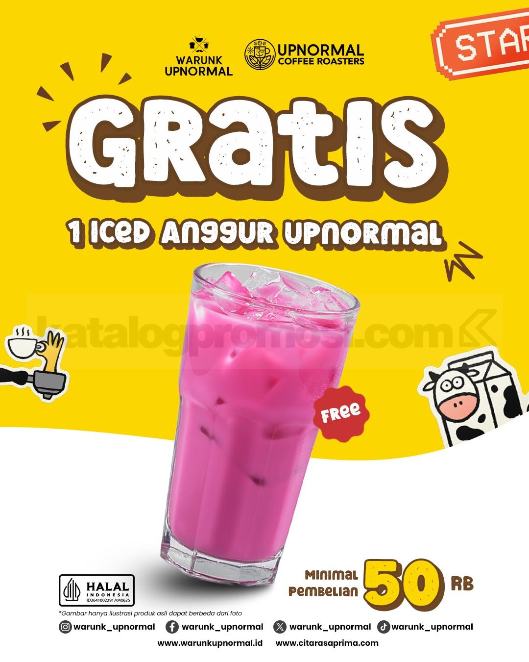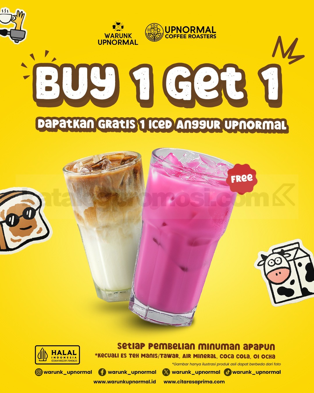 Promo Warunk Upnormal Buy 1 Get 1 Iced Anggur Upnormal Setiap beli minuman apapun atau cukup belanja minimal Rp50ribu.