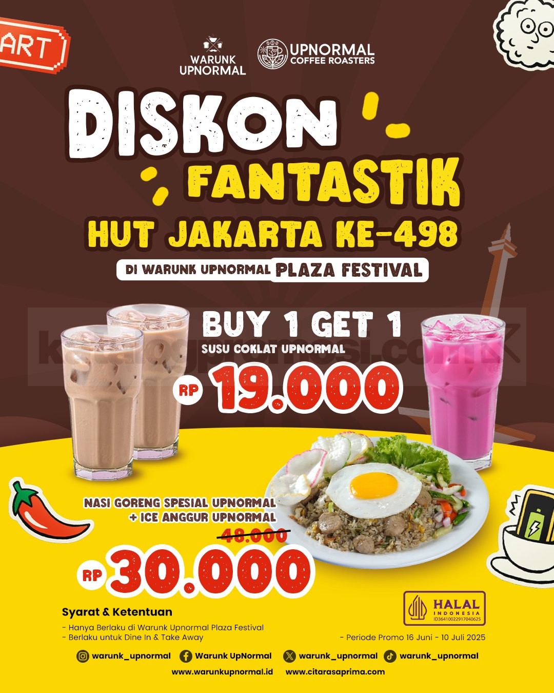 Promo tersedia di seluruh outlet Warunk Upnormal dan platform GoFood, GrabFood, ShopeeFood.